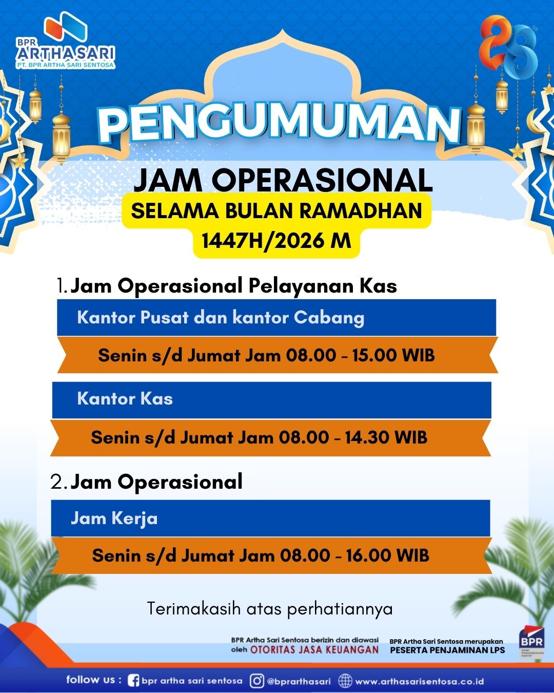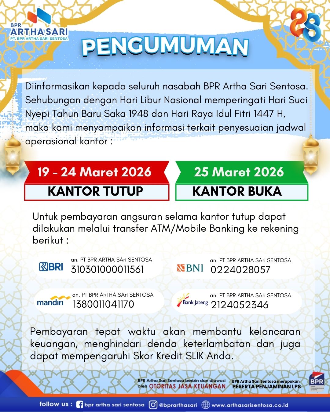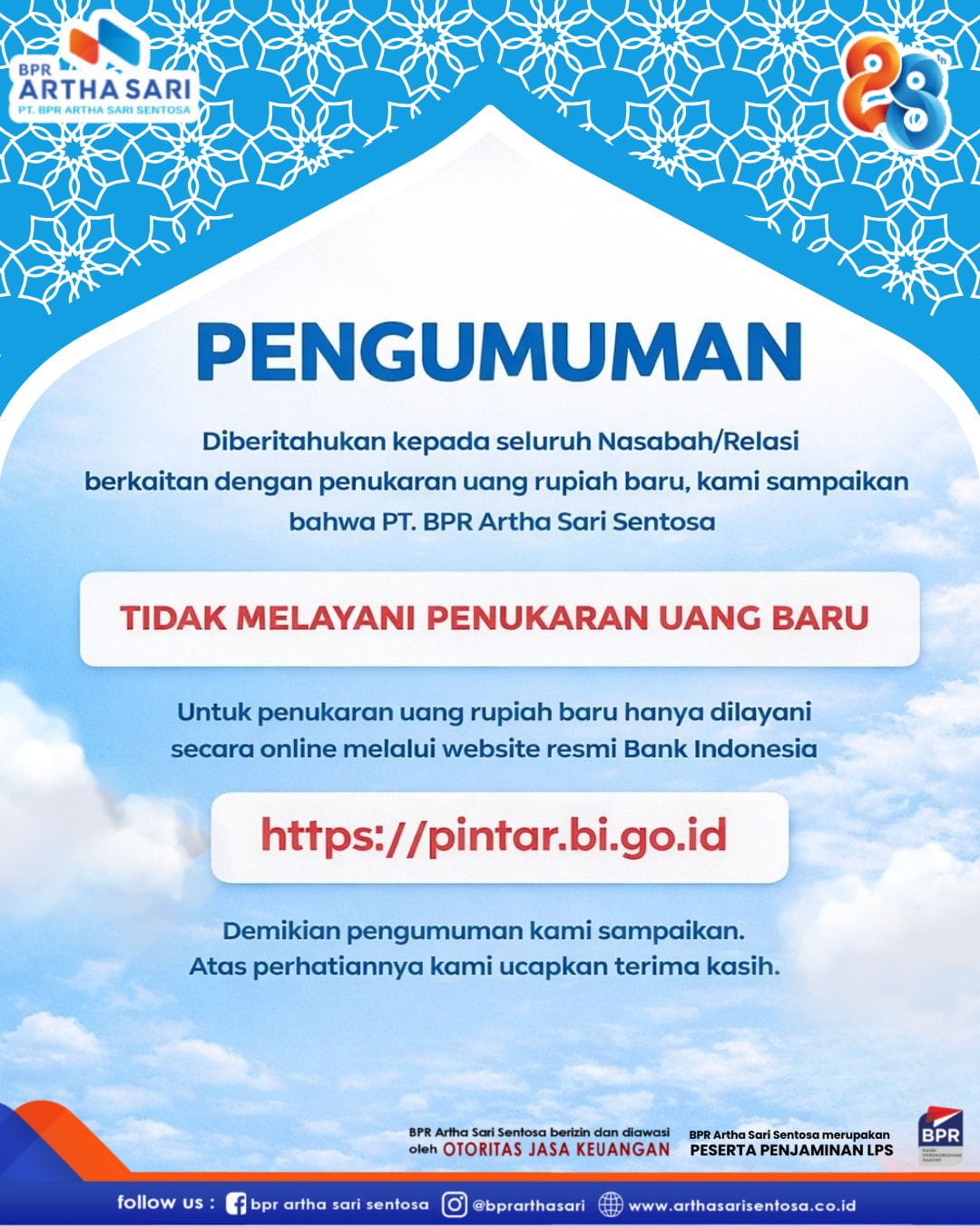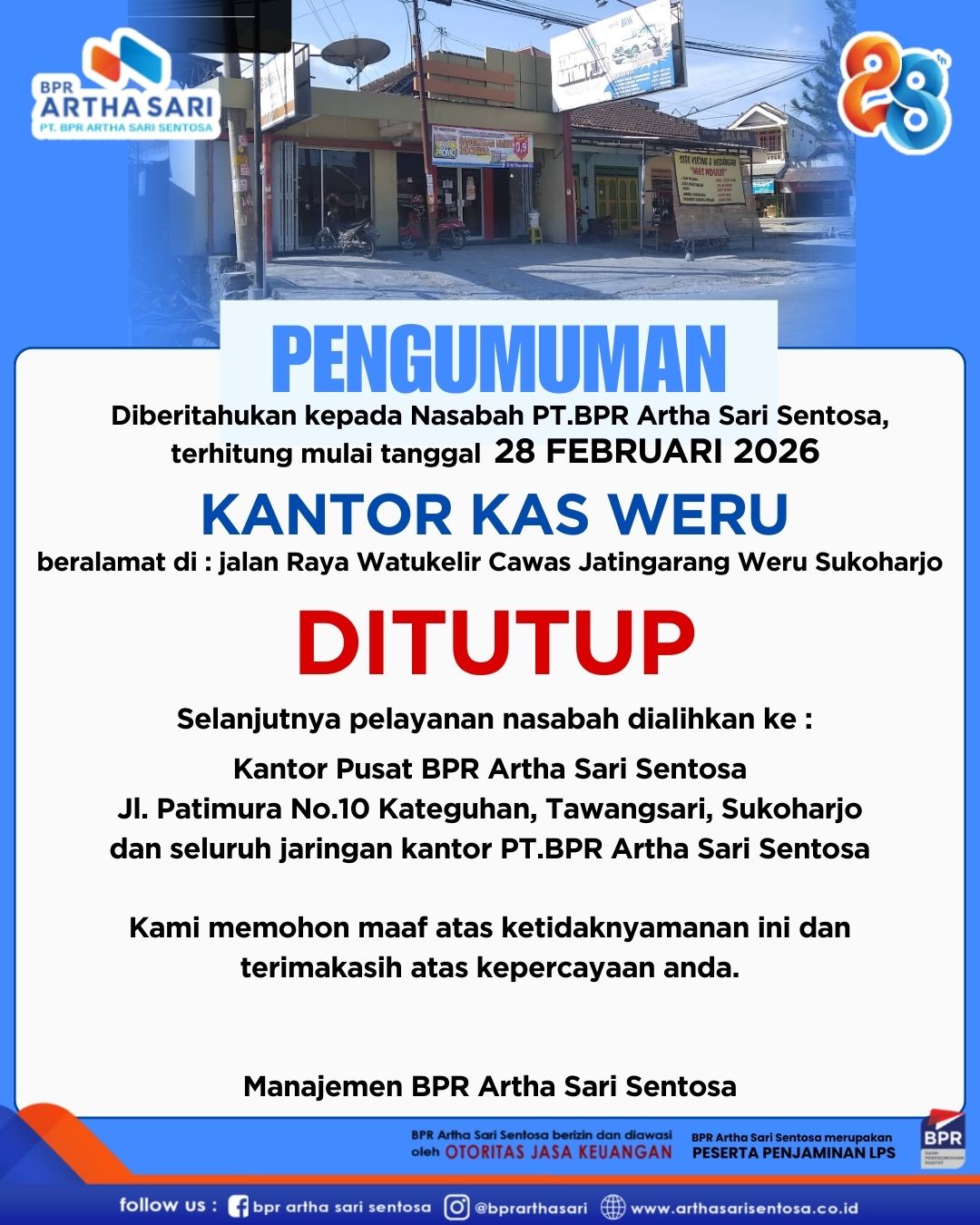 Selamat Ulang Tahun ke-28 BPR Artha Sari Sentosa! Terima kasih atas kepercayaan dan dukungan