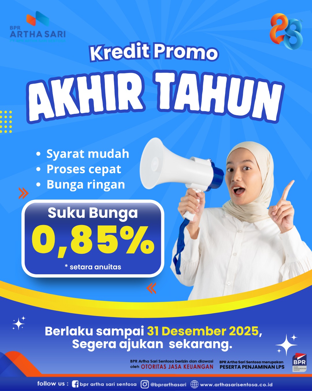 Manfaatkan kesempatan terbaik di akhir tahun dengan Kredit Promo BPR Artha Sari. Nikmati suku